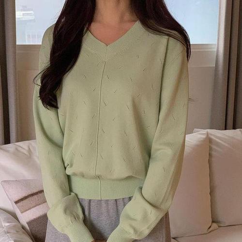 [옷자락] 여자 스카시 여리여리 절개 브이넥 봄데이트룩 니트