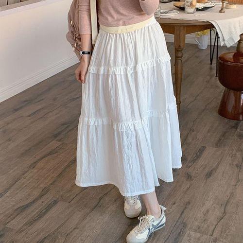 [다잇템]여자 봄데이트룩 큰사이즈 티어드 롱스커트
