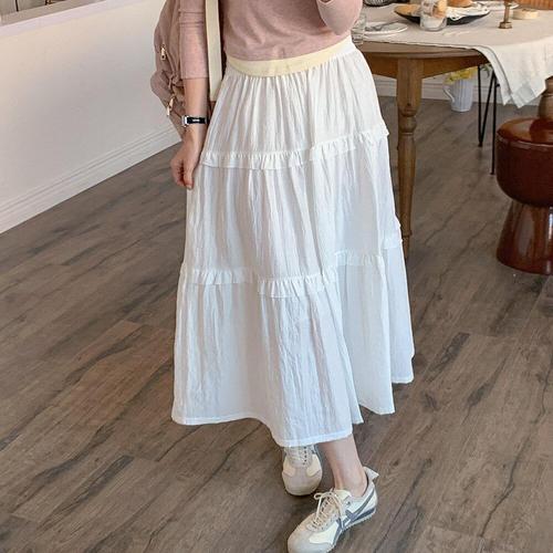 [옷자락]여자 봄데이트룩 프릴 캉캉 빅사이즈 셔링 롱스커트