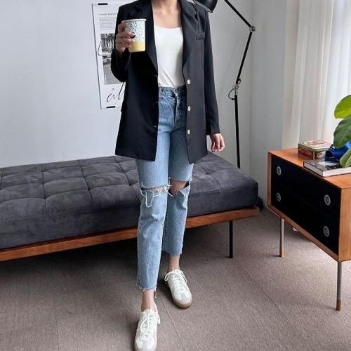 [끌레아]트윈 베이직 하프 롱자켓 테일 러드 여성 일자 재킷 여성롱 봄자켓