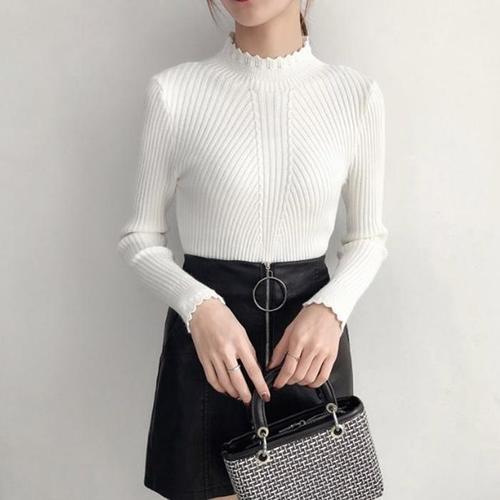 [신상오픈런]슬림핏 모크넥 스칼럽 딱붙는 골지니트 봄티셔츠 (30546269)
