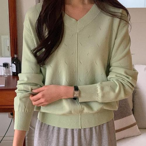 [신상오픈런]브이 칠부니트 출근 봄티셔츠 커피색 시보리 캐시미어 (30436256)