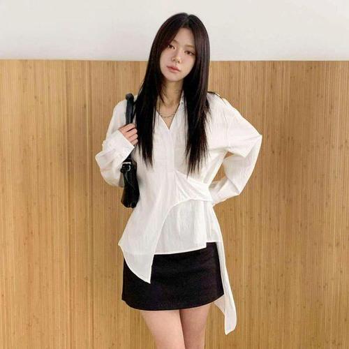[옷자락]여자 봄 간절기 랩 오버핏 셔츠 블라우스