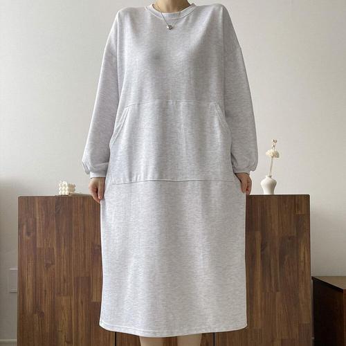 [옷자락]여자 캥거루 빅포켓 임부복 퍼프 무채색 봄 롱원피스