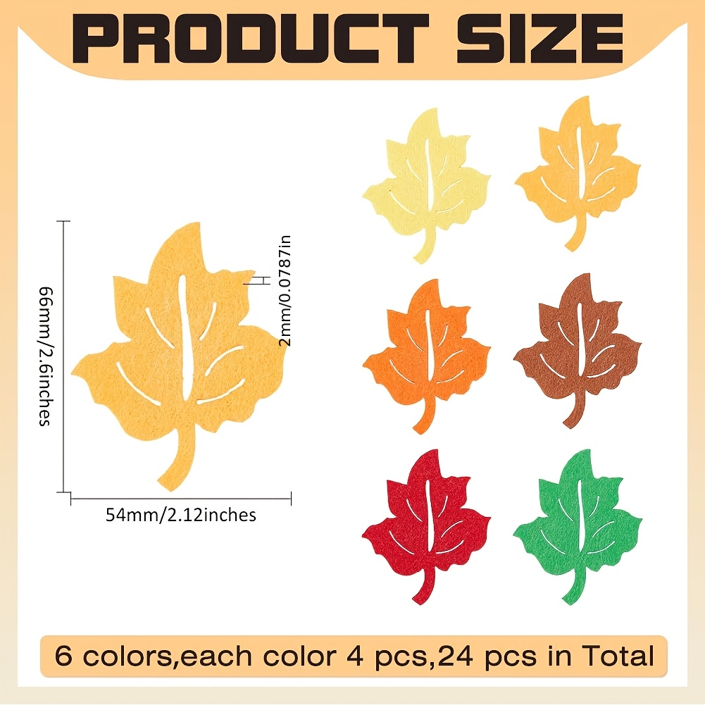 TEMU 24개 가을 단풍잎 펠트 어플리케 - 6가지 생생한 색상(빨강, 주황, 노랑, 초록, 갈색, 진갈색) 2.6x2.1인치 부직포 DIY 공예, 스크랩북킹, 홈 데코 및 계절 프로젝트용