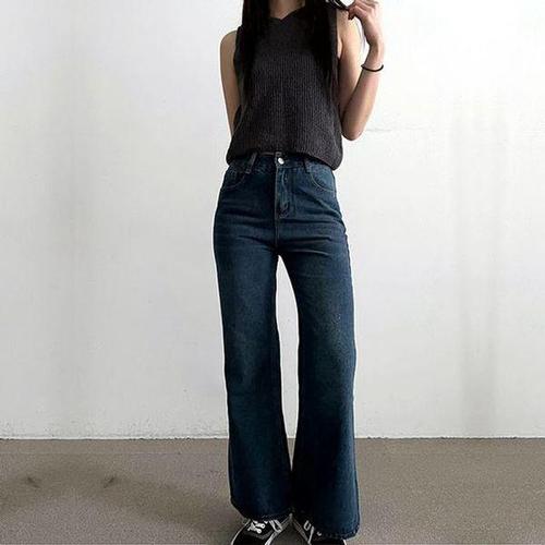 [에이치플러스몰]스트레이트 와이드 세미 진청데님 부츠컷 진 키작녀청