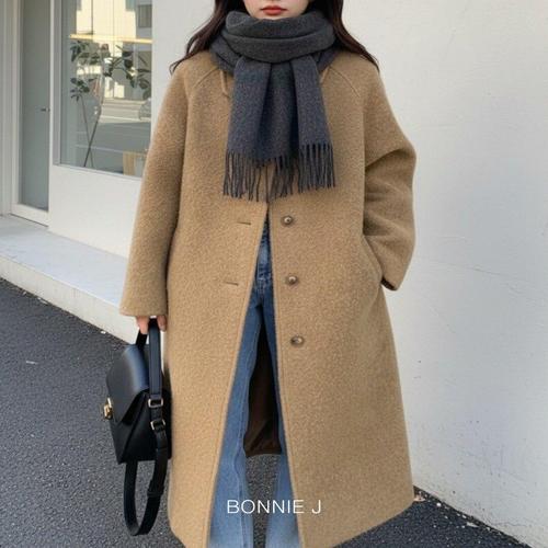[보니제이]포근한 부클 텍스처 루즈핏 롱코트 2color 겨울 데일