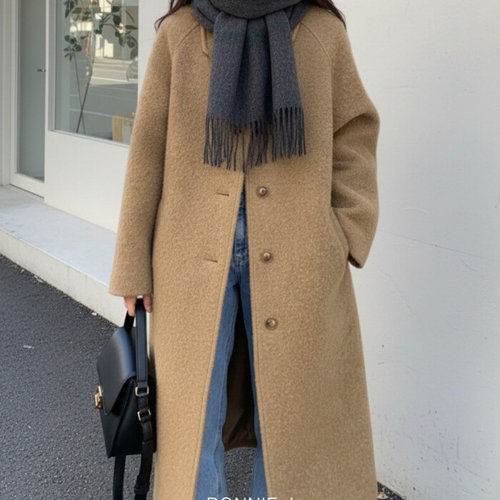 보니제이 / 포근한 부클 텍스처 루즈핏 롱코트 2color 겨울 데일