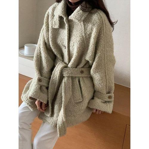 워너비뮤즈 / 벨트SET 패딩안감 부클 울 코트 카라 하이넥