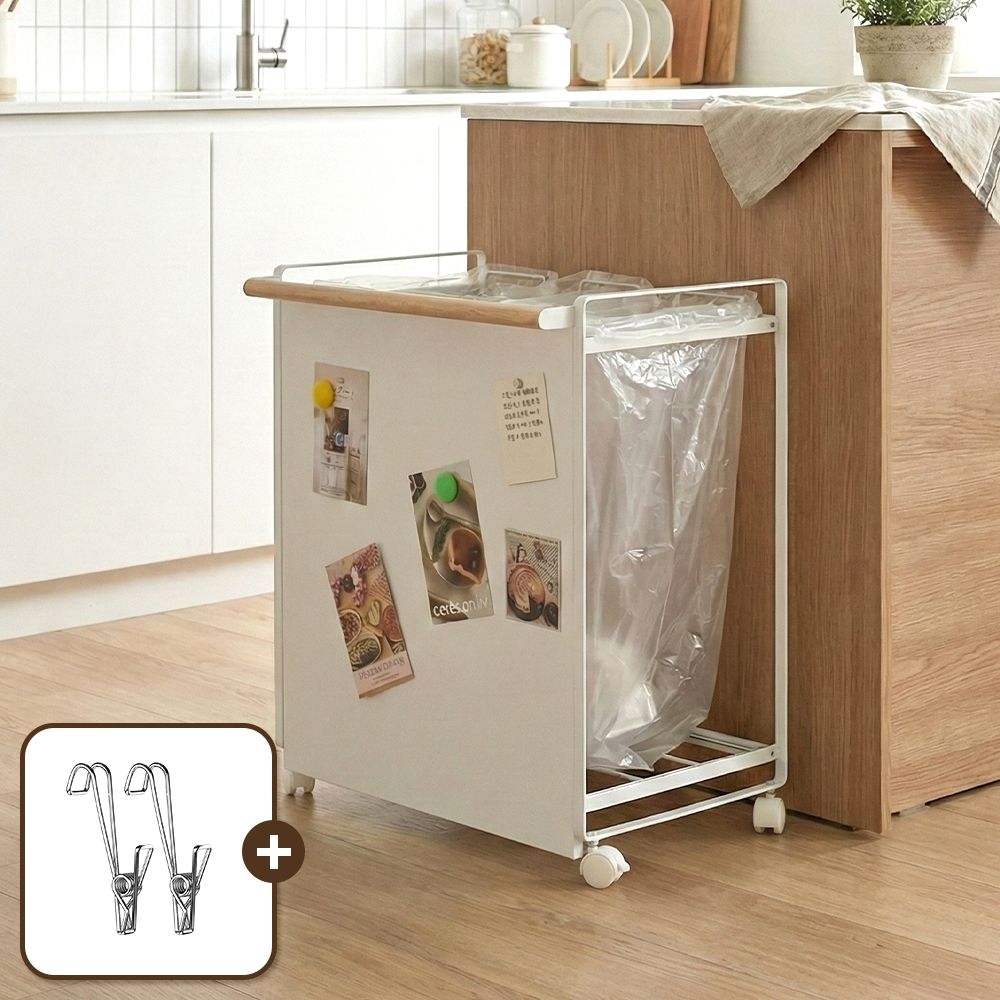 스텐 2026년 신제품 분리수거함 트롤리 이동식 쓰레기봉투걸이 거치대 가정용 재활용 수납함