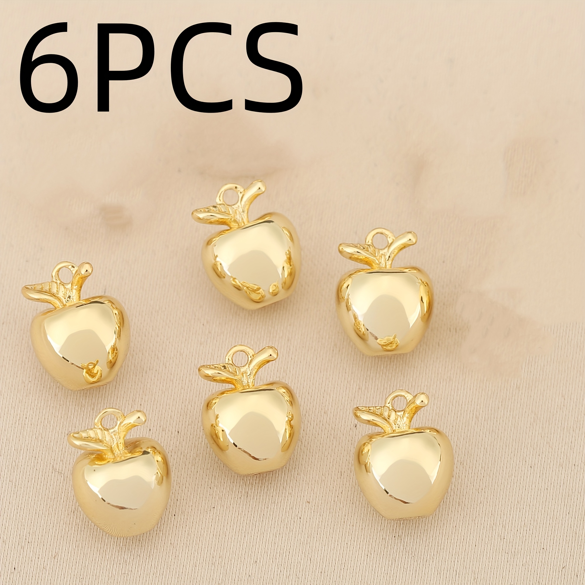 TEMU 6개입, 유럽 & 미국 스타일 - 고급스러운 구리 미니 애플 참 & 펜던트, 남녀공용 패션 DIY 목걸이 주얼리 만들기 액세서리