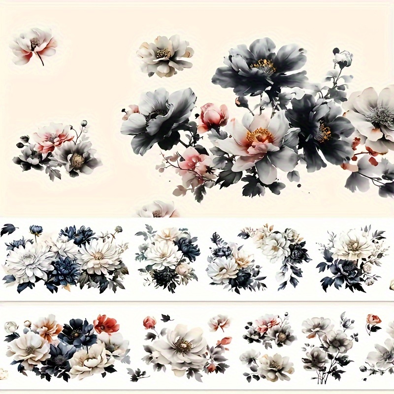 TEMU 2미터 블랙 로즈 PET 테이프, 수제 DIY 노트북용, 저널 접합 테이프 스티커, 휴대폰 케이스용, 테이프 스티커, 스크랩북킹, 카드 제작, 문구류 접합 패턴 스티커용
