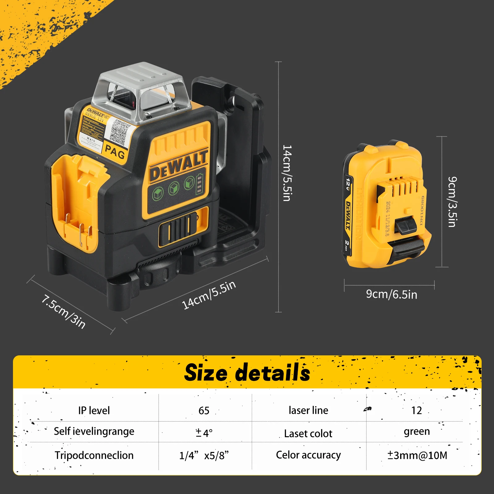 2025 Dewalt DW089LG 12 라인 3면 * 360 수직 12V 리튬 배터리 레이저 레벨 수평 녹색 측정기 야외