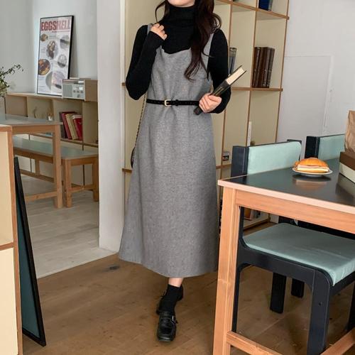 [옷자락]여자 폴라 니트 울 뷔스티에 벨트 원피스 세트