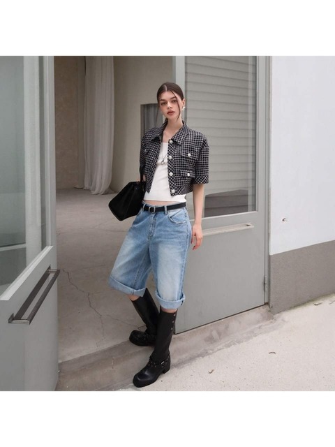 심플 숏 크롭 반팔 여성 자켓 여름 캐주얼 아우터