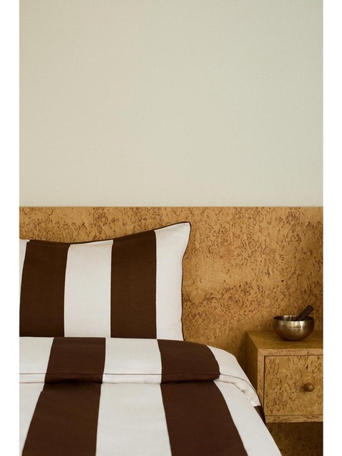 [에이치엔엠] 코튼 새틴 싱글 이불커버 세트 브라운/스트라이프 1277216002