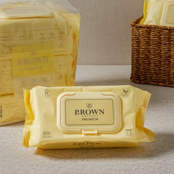 브라운 프리미엄 옐로우 아기물티슈 캡형 72매 X 3팩