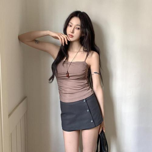 끈나시 크롭 슬림 나시티 이너 민소매 노브라 캡내장나시 브라탑 탱크탑 노와이어