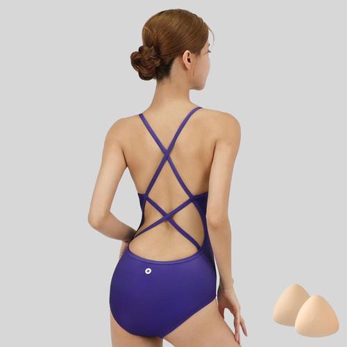 [스피카]스피카 여성 더블엑스백 스윔웨어 SPA104 딥퍼플+실리콘브라캡 세트