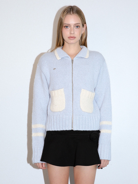 [키시닝] 슬리브 라인 투웨이 니트 집업 (라이트블루)