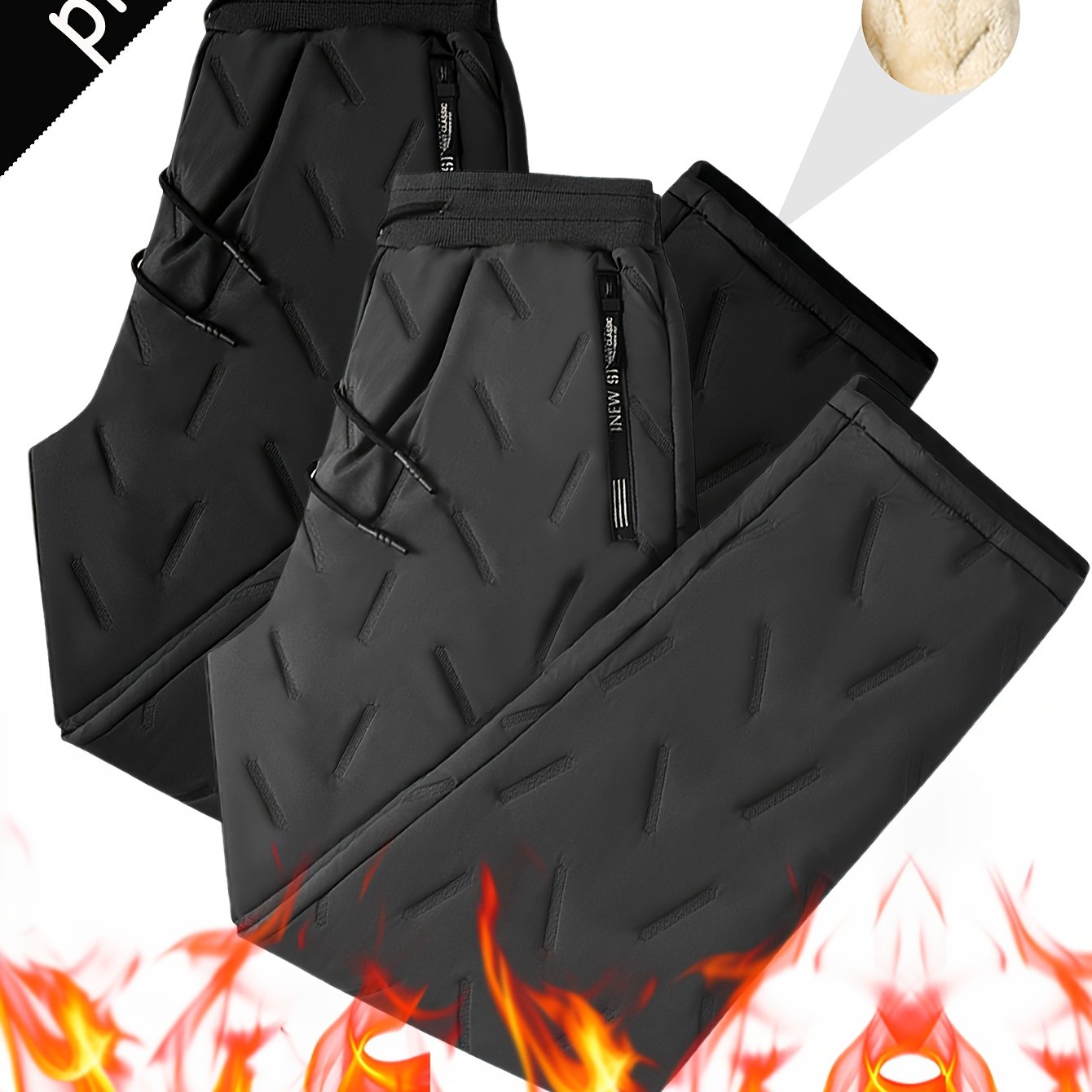 TEMU 2개 세트 남성용 겨울 보온 팬츠 - 방풍 방한 기능, 고탄력 허리밴드 & 지퍼 포켓, 부드러운 보풀 방지 소재, 스키, 아웃도어, 캐주얼 착용 - 추운 날씨에 적합한 매칭 바지