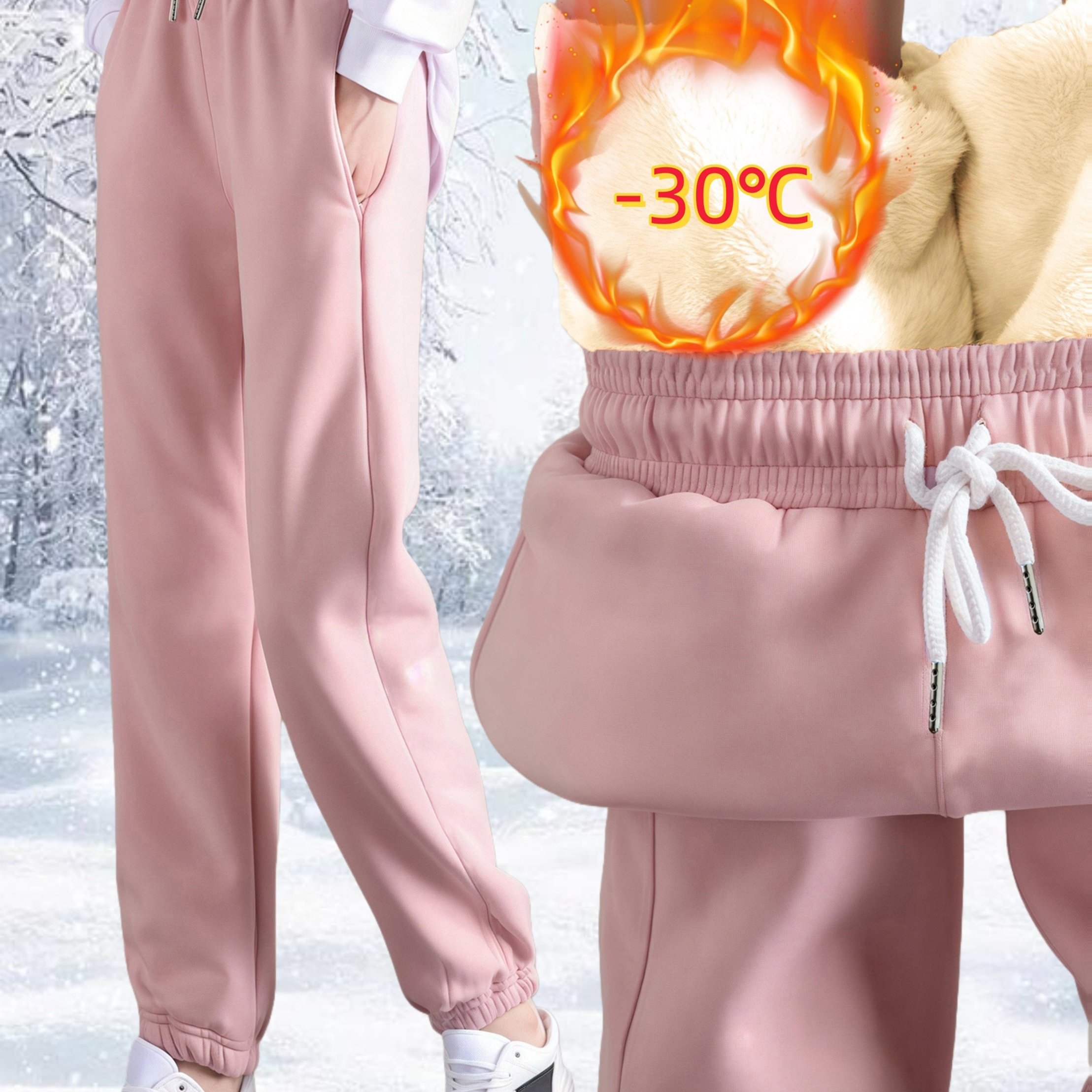 TEMU 여성용 초극세사 안감 스키 바지 - 탄성 허리 & 커프스, 두꺼운 보온 스웨트팬츠 스키, 스노ーボ드, 아웃도어 - 루즈핏 캐주얼 라운지 팬츠, 스키복, 스노보드 장비, 고탄성 원단