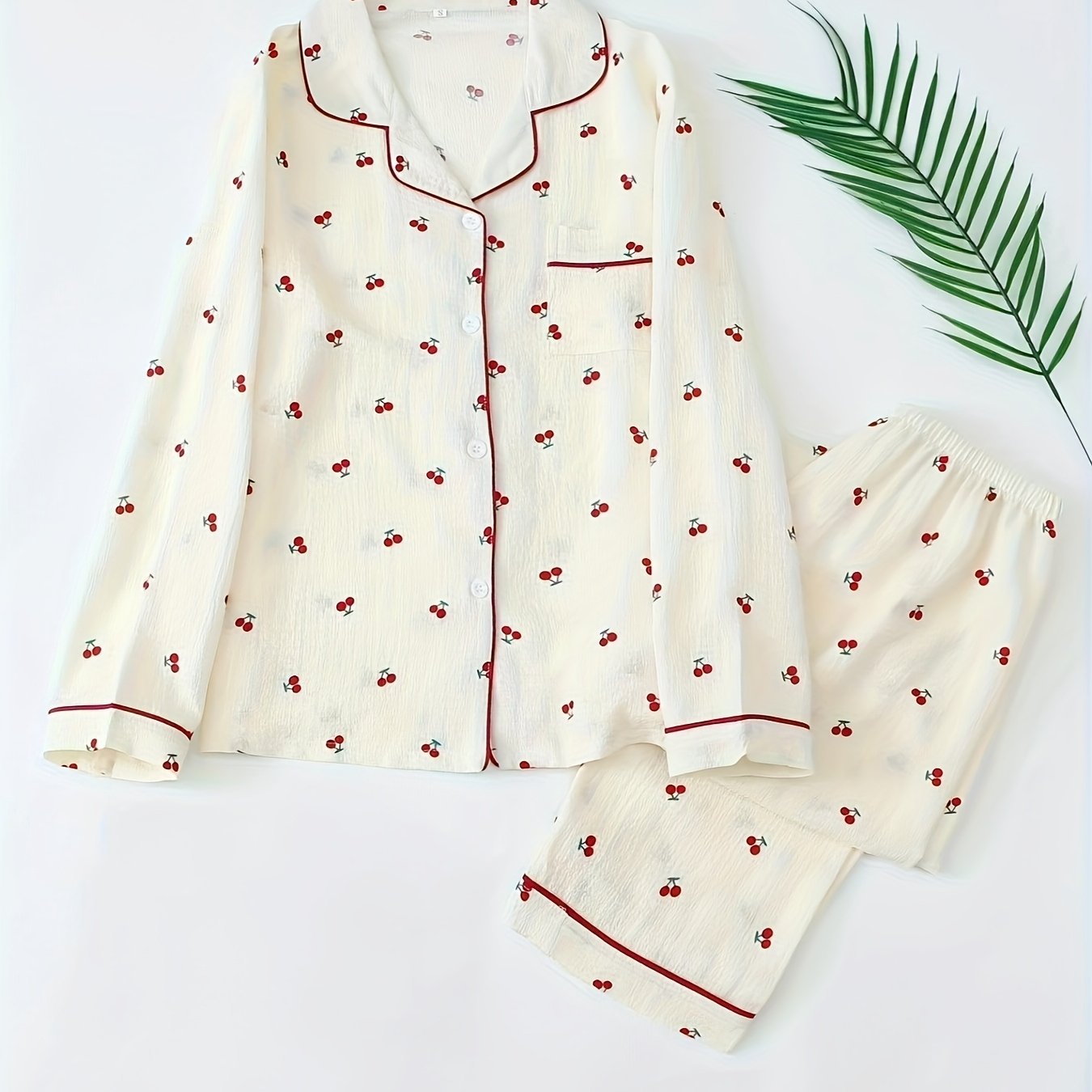 TEMU 편안한 딸기 프린트 긴팔 상의 (버튼 포함), 롱 팬츠가 포함된 신축성 있는 허리 캐주얼 세트.