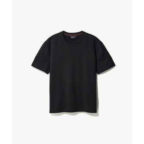 [에스티코]수피마 브이넥 반팔 티셔츠_블랙 (세미오버핏)_STSXB82NSB