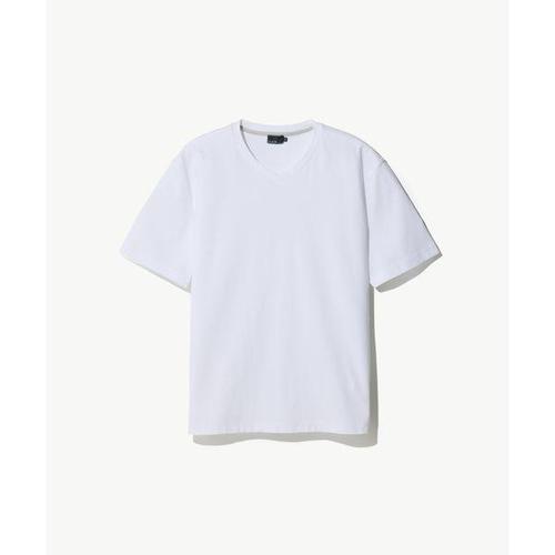 [에스티코]수피마 브이넥 반팔 티셔츠_화이트 (세미오버핏)_STSXB81NSW