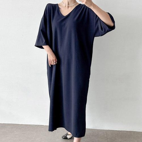 [유야]면 무지 브이넥 긴팔 롱원피스 홈웨어 -OP0555H- 빅사이즈 루즈핏 여성 가을