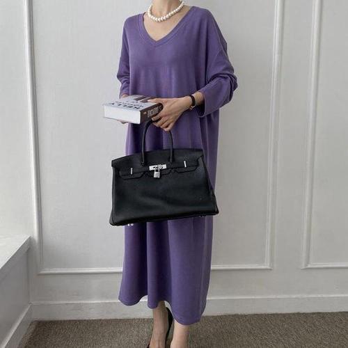 [신상오픈런]여성 가을 긴팔 브이넥 빅사이즈 롱원피스 홈웨어