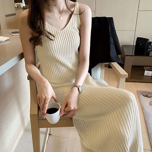 [오너클랜]인기상품 여성용 브이넥 골지 슬림핏 니트 롱 원피스 여름 나시 드레스 [WFLIFM9_260301]