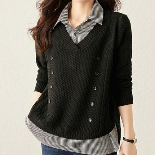 [패션시그널]브이넥니트레이어드 셔츠블라우스 C3DFAE