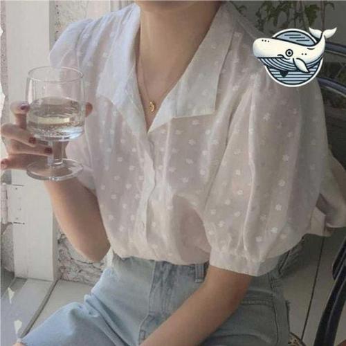 [에이치플러스몰]꽃자수 가벼운 캐주얼 브이넥 여름 필수템 퍼프소매