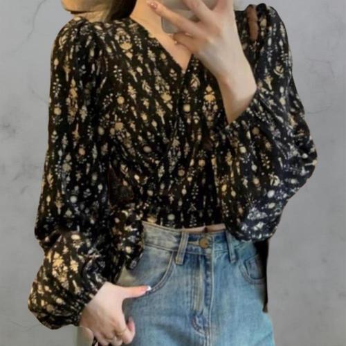 [다잇템][다잇템] 여성 벌룬 소매 V넥 크롭형 블라우스_23995834_588872