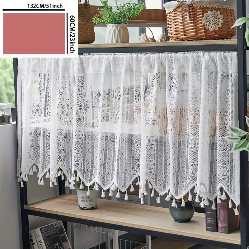 TEMU 지오메트릭 패턴 레이스 타샬 카페 커튼 티어 - 폴리에스테르 짠 세미시어 로드 포켓 주방 창 커튼, 열차단 기능 포함, 손세탁 전용 - 예술적이고 끈이 없는