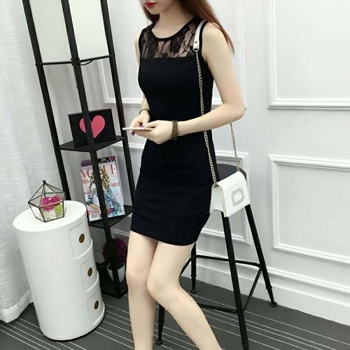 여성 원피스 시스루 블랙 민소매 미니 원피스