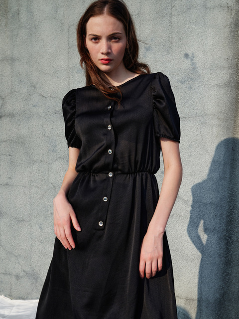 [쏘리투머치러브] 재클린 퍼프 슬리브 샤틴 드레스_블랙