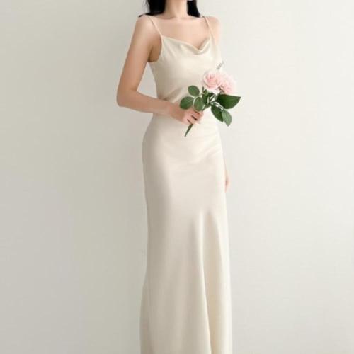 [옷자락]여성 새틴 블랙 롱 나시 드레스