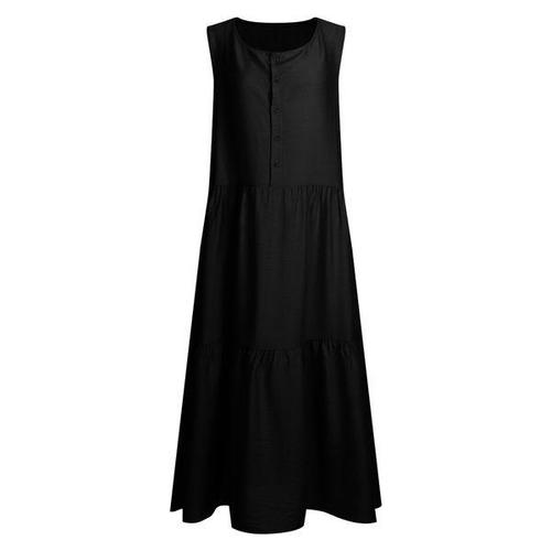 [샵앤]여성 민소매 심플 루즈핏 3단 캉캉 롱 원피스 NTT-WDR-20752-블랙