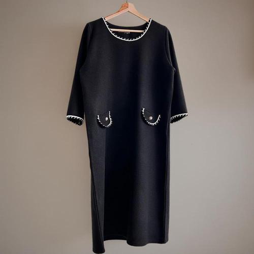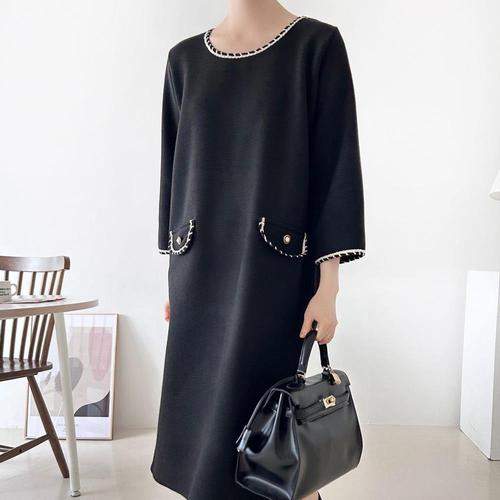 [샵앤]국산 여성 라운드 포켓배색 임부 롱원피스 LL-WDR-4848-블랙