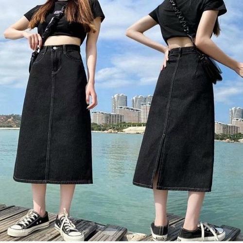 [오노마] ONM 블랙 데님 다리길어보이는 여자 롱치마 데일리 코디 (S9997285)