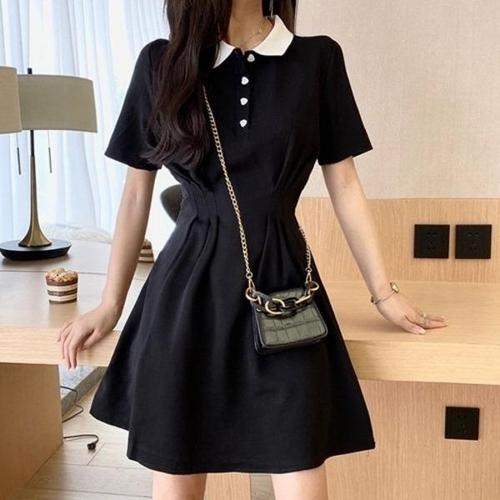 레이어드원피스 여자 페이크 레이어드 카라 버튼 블랙 미니 원피스