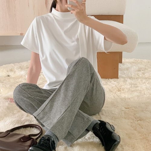 에르디테 / 타이 블라우스 반팔 티셔츠 루즈핏 레이어드 코디 화이트 블랙