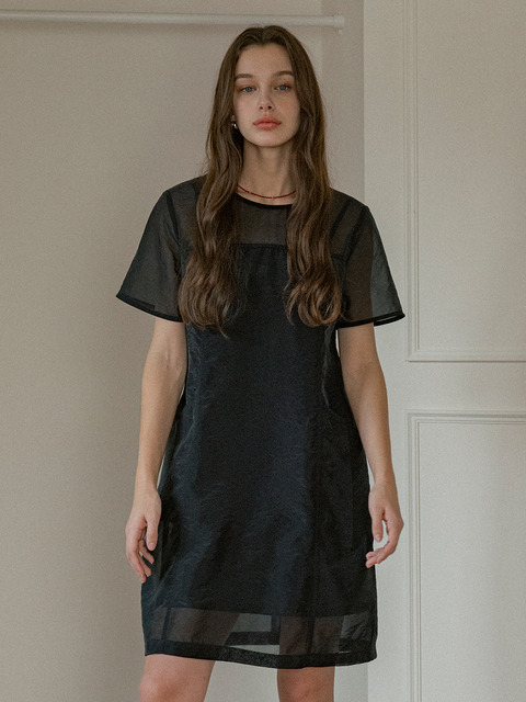 [반원 아틀리에] 시스루 레이어드 셋업 원피스_블랙