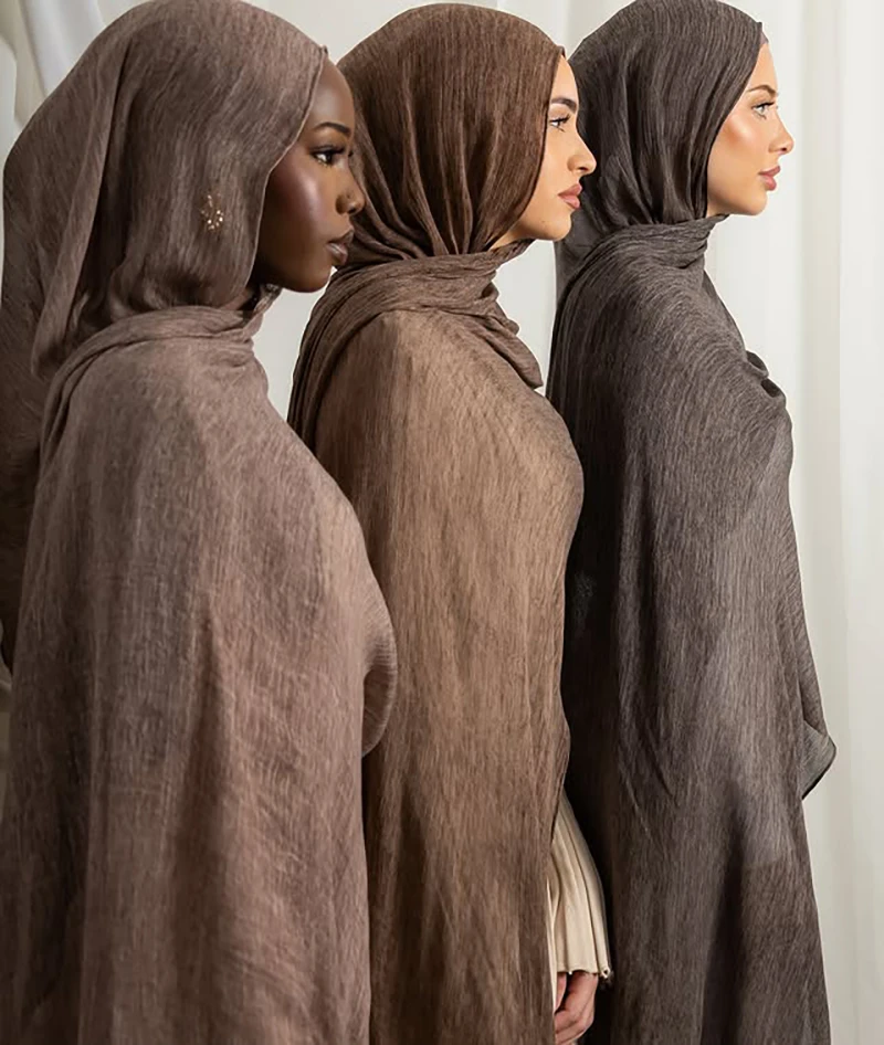 고품질 면 린넨 히잡 텍스처드 레이온 모달 스카프 가벼운 무게 무슬림 여성 히잡 크링클 비스코스 숄