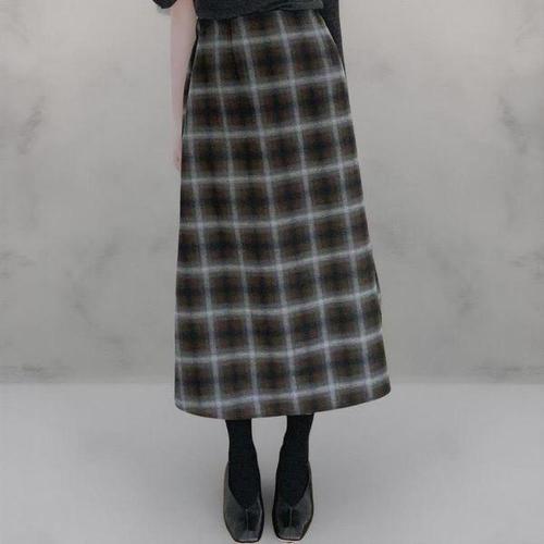 [옷자락]여성 두툼 하이웨이스트 배색 체크 A라인 긴 치마