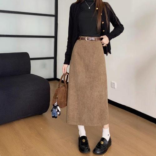 (25년 신상) 80kg까지 빅사이즈 1+1 여성 기모 하이웨이스트 밴딩 빈티지 골덴 스커트 가을 겨울 편한 고급 심플 우아한 찰랑 여성스러운 분위기 디자인 심플 a라인 스커트
