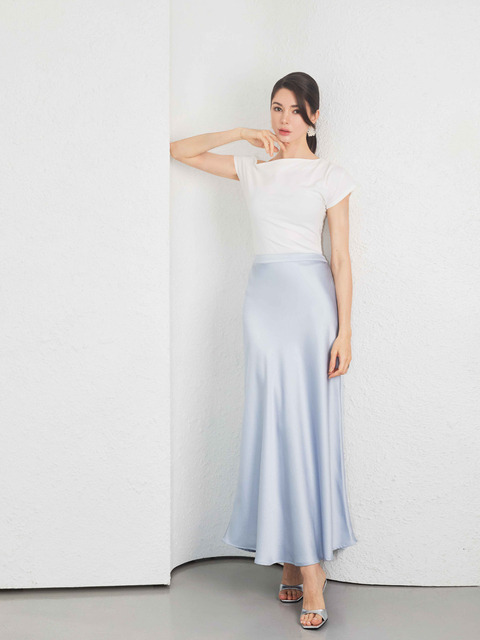 [르반르꼬르] 밴딩 새틴 에이라인 스커트-스카이 블루