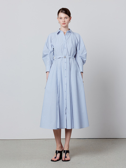 [행복여] 로웰 스트라이프 벌룬 퍼프 롱 원피스